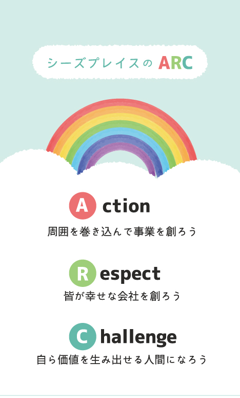 シーズプレイスの「ARC」は行動指針の頭文字です。