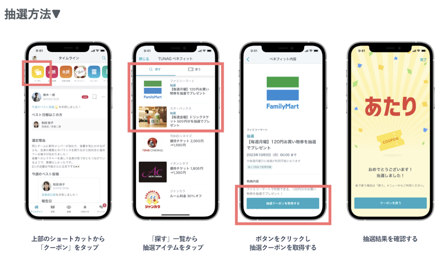 福利厚生 2024.06.212024.08.19 TAMA Big Advance Cポイント交換 1000円コース/5000円コース フェム・ウェルネス TUNAGベネフィット TUNAGトップページから「クーポン」を確認(スマホ限定)
